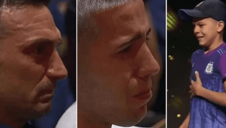 Συγκινητικές στιγμές στην εκδήλωση που έλαβε χώρα ώστε να τιμηθεί η Εθνική Αργεντινής από την CONMEBOL για την κατάκτηση του Παγκοσμίου Κυπέλλου με τον Χοσέ Αντράντα, νεαρό φίλαθλο της Αργεντινής να μιλάει με συγκινητικά λόγια για τον Λιονέλ Μέσι τον Εμιλιάνο Μαρτίνες και τον Λιονέλ Σκαλόνι.