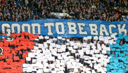 Η Ρέιντζερς επέστρεψε στα ευρωπαϊκά σαλόνια, έστω και του Γιουρόπα Λιγκ, έπειτα από 6 ολόκληρα χρόνια. Έμοιαζε με αιώνας ειδικά για τους οπαδούς της που δεν έμειναν όμως μακριά της άσχετα αν έπεσε στην 4η κατηγορία λόγω χρεών.