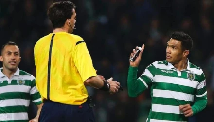 Ο διαιτητής της αναμέτρησης έδειξε να απολαμβάνει τον πανυγηρισμό του επιθετικού της Σπόρτινγκ, όμως ήταν αναγκασμένος να τον τιμωρήσει με την κίτρινη κάρτα όπως ορίζει ο κανονισμός.