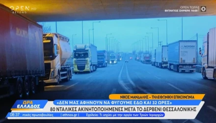 «Δεν μας αφήνουν να φύγουμε εδώ και 32 ώρες». Απίστευτες καταγγελίες από εργαζόμενους, που έχουν κολλήσει στο Δερβένι Θεσσαλονίκης. Θα πρέπει να καταγραφεί, άλλωστε, ότι ο δρόμος, σήμερα Τρίτη πρωί, παραμένει κλειστός για τα βαρέα οχήματα μέγιστου επιτρεπόμενου βάρους άνω των 3,5 τόνων και οι οδηγοί έχουν αγανακτήσει.
