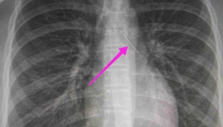 Από την απεικονιστική διερεύνηση που πραγματοποιήθηκε με ακτινογραφία θώρακος αρχικά και ακολούθως με αξονική τομογραφία θώρακος, διαπιστώθηκε η ύπαρξη αιχμηρού μεταλλικού ξένου σώματος στην αναπνευστική οδό (αριστερός κύριος βρόγχος) και όχι στην πεπτική οδό, αναφέρει η ανακοίνωση του νοσοκομείου, στα μέσα κοινωνικής δικτύωσης.