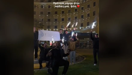 Μια ιδιαίτερη και άκρως εντυπωσιακή πρόταση γάμου συνέβη το απόγευμα της Δευτέρας στο κέντρο της Θεσσαλονίκης, έξω από γνωστή καφετέρια.