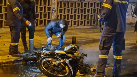 Μολότοφ σε υπηρεσιακή μοτοσυκλέτα της αστυνομίας έριξαν κουκουλοφόροι λίγο πριν ξεκινήσει η πορεία για την επέτειο του Πολυτεχνείου.