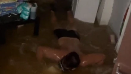 Ο Στράτος από τη Θεσσαλονίκη δεν... πτοήθηκε από την νεροποντή, έβαλε μάσκα του και βατραχοπέδιλα και έκανε... μακροβούτι μέσα σε πλημμυρισμένο σπίτι για να βρει το... τσίπουρό του!