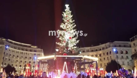 Θεσσαλονίκη: Φωταγωγήθηκε το χριστουγεννιάτικο δέντρο στην Πλατεία Αριστοτέλους