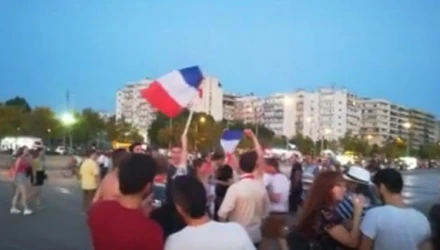 Πέρα από τους ξέφρενους πανηγυρισμούς στο Γαλλικό Ινστιτούτο, ομάδα Γάλλων τουριστών, αμέσως μετά τη λήξη του τελικού ανάμεσα στους «τρικολόρ» και την Κροατία (4-2), κατηφόρισε στη Νέα Παραλία, κρατώντας σημαίες της χώρας και τραγουδώντας συνθήματα.