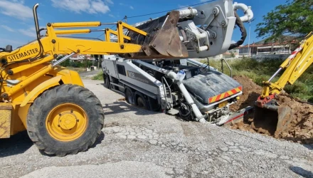 Στο σημείο έσπευσαν σκαπτικό μηχάνημα προκειμένου να συνδράμουν στην απομάκρυνση του οχήματος.