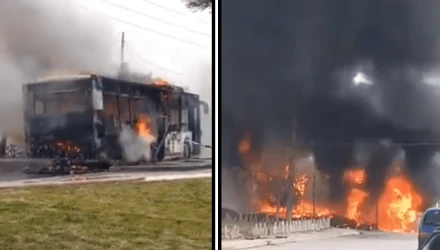 Οι επιβάτες μαζί με τον οδηγό εγκατέλειψαν άμεσα το λεωφορείο και δεν σημειώθηκε τραυματισμός. Σύμφωνα με πληροφορίες, το όχημα κάηκε ολοσχερώς.