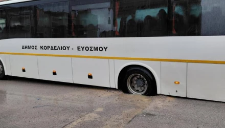 Θεσσαλονίκη: Λεωφορείο έπεσε σε μεγάλη λακκούβα-Μετέφερε μαθητές στο σχολείο