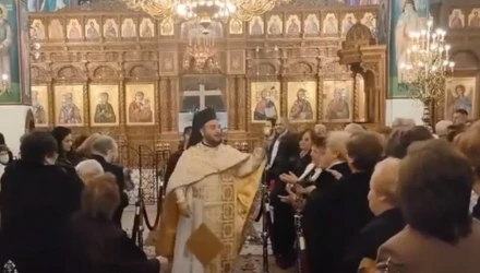 Ο αρχιμανδρίτης Παντελεήμων Αναστασιάδης, σκόρπισε δαφνόφυλλα, σύμβολα της νίκης του Χριστού. Την ίδια ώρα οι πολυέλαιοι της εκκλησίας κουνήθηκαν -σαν από σεισμό- και οι πιστοί χτύπησαν τις πάγκες, τα στασίδια, συμμετέχοντας με αυτό τον ιδιαίτερα ηχηρό τρόπο στη χαρμόσυνη είδηση της Ανάστασης του Κυρίου.