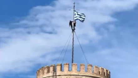 Συγκεκριμένα σε βίντεο που δημοσιεύτηκε στο ΤikΤok, φαίνεται δυο άτομα νεαρής ηλικίας, να σκαρφαλώνουν στον ιστό της ελληνικής σημαίας που βρίσκεται στην κορυφή του Λευκού Πύργου.
