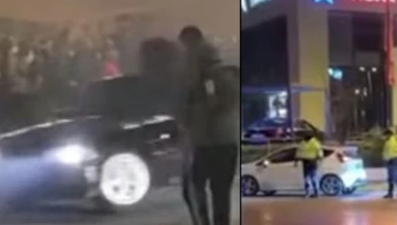 Στο βίντεο ντοκουμέντο, διακρίνεται επιβάτης να έχει βγει από την ηλιοροφή του ενός οχήματος, που κάνει περιστροφές 360 μοιρών. Ανάμεσα στα αυτοκίνητα που σπινιάρουν, ένας άντρας βιντεοσκοπεί.