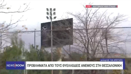 Οι θυελλώδεις άνεμοι επηρέασαν και τον φωτεινό πίνακα του Καυτανζογλείου Σταδίου της πόλης, ο οποίος περιστρεφότν ανάλογα με τη φορά του αέρα.