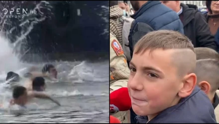 Ο 25χρονος Μάρκος Αναστασόπουλος έπιασε τον Τίμιο Σταυρό στον Θερμαϊκό Κόλπο, στη Θεσσαλονίκη, ανήμερα των Θεοφανίων, στην Τελετή Αγιασμού των υδάτων.