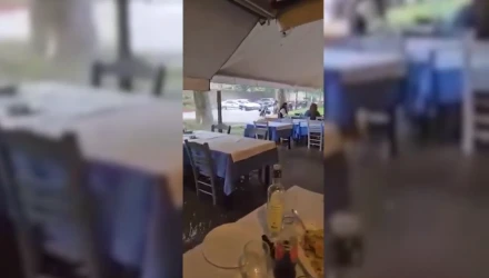 Σε λίμνη μετατράπηκε μια ταβέρνα στη Θεσσαλονίκη, μετά τη σφοδρή βροχόπτωση που ξέσπασε στην πόλη, λίγα λεπτά μετά τις 16:30.