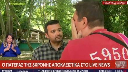 Με δάκρυα στα μάτια, ο πατέρας του 8χρονου κοριτσιού μίλησε στο Mega και την εκπομπή «Live News» και αναφέρθηκε με λεπτομέρειες στο περιστατικό.