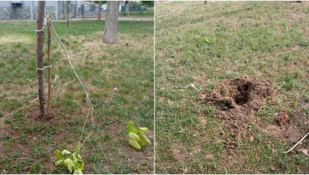 Συγκεκριμένα, όπως επισημαίνουν οι υπάλληλοι του δήμου, έσπασαν τους κορμούς, κατέστρεψαν δέντρο που προϋπήρχε στο πάρκο, ενώ δεν δίστασαν να ξεριζώσουν και να πάρουν ένα από τα δέντρα που είχε φυτευτεί από τους μικρούς μαθητές.