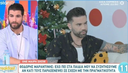 Εκφράζοντας τον προβληματισμό και την αγωνία του, ο Θοδωρής Μαραντίνης υπογράμμισε πως έχει μεταφέρει στους γιους του ότι ένα κομμάτι της δουλειάς των γονιών του έχει να κάνει με τη δημοσιότητα. Διαβάστε περισσότερα στο mynews.