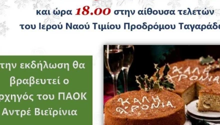 Στις 6μμ θα γίνει η κοπή της πίτας του Θριάμβου Ταγαράδων στην αίθουσα τελετών του Ιερού Ναού Τιμίου Προδρόμου Ταγαράδων