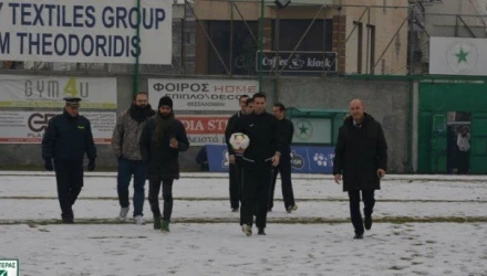 «Σήμερα στις 13:15 πραγματοποιήθηκε έλεγχος μαζί με τους διαιτητές στον αγωνιστικό χώρο. Η παρατήρηση σε πέταγμα της μπάλας από τον διαιτητής ήταν ότι η μπάλα κολλούσε, με αποτέλεσμα να μην διεξαχθεί ο αγώνας λόγω του χιονιού, το οποίο ήταν στο μεγαλύτερο μέρος του γηπέδου, μπροστά στις εστίες και στις άκρες, ενώ υπήρχε και παγετός.