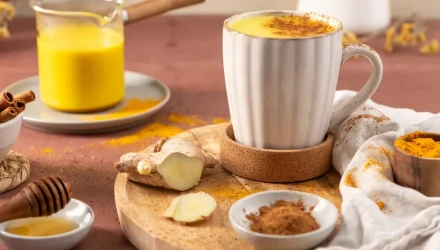 Το «χρυσό γάλα» είναι ένα καταπραϋντικό ρόφημα με βάση το γάλα ή το ρόφημα καρπών και κύριο συστατικό τον κουρκουμά, που του δίνει το χαρακτηριστικό χρυσαφένιο χρώμα. Συνδυάζεται συχνά με μπαχαρικά όπως τζίντζερ, κανέλα και μαύρο πιπέρι, προσφέροντας αντιφλεγμονώδεις ιδιότητες και υποστηρίζοντας τη γενικότερη ευεξία και την πέψη.