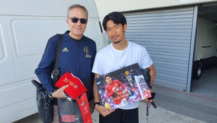 Ενας καμβάς με φωτογραφία του και αποτυπωμένα τα στατιστικά στοιχεία από την παρουσία του στους «κόκκινους διαβόλους» (57 ματς, 6 γκολ 10 ασίστ) με τους οποίους πανηγύρισε Πρωτάθλημα και Σούπερ Καπ, ήταν το όμορφο δώρο που έκαναν στο Σίντζι Καγκάβα εκπρόσωποι της Πανελλήνιας Λέσχης Φίλων Μάντσεστερ Γιουνάιτεντ (Hellenic Supportes club).