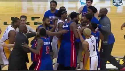 Με τη λήξη του αγώνα, όπου οι γηπεδούχοι νίκησαν με 94-82, ο Πολ Τζορτζ των Πέισερς και ο Μάρκους Μόρις των Πίστονς άρχισαν τις κοκορομαχίες, με τον δεύτερο να απωθεί δυνατά τον πρώτο και να ανάβουν τα αίματα, με συμπαίκτες τους να σπεύδουν στο σημείο και να «σβήνουν» σχετικά γρήγορα τη «φωτια» που πήγε να «ανάψει»