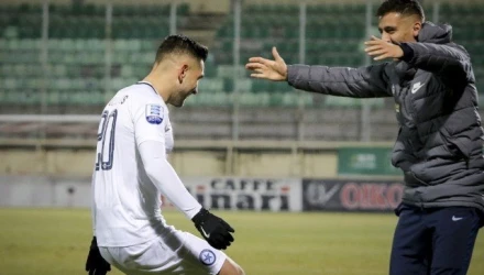 Ο Κουλούρης που άνοιξε το σκορ έσπευσε να πανηγυρίσει το γκολ με τον νεαρό αμυντικό και του αφιέρωσε το γκολ.