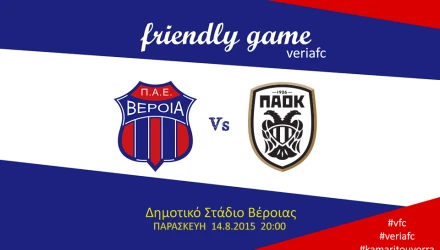 Η ΠΑΕ Βέροια ανακοίνωσε το φιλικό με τον ΠΑΟΚ και την ώρα διεξαγωγής του. Η φιλική αναμέτρηση θα διεξαχθεί στην πόλη της Ημαθίας την Παρασκευή (14/8) στις 20:00.