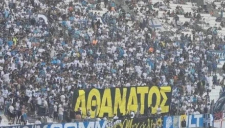 Οι οπαδοί των γηπεδούχων που είναι αδελφοποιημένοι με τους φίλους της ΑΕΚ, αποχαιρέτησαν με πανό τον Μιχάλη Κατσούρη.