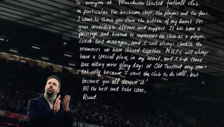 Η Μάντσεστερ Γιουνάιτεντ θα έχει πάντα μια ξεχωριστή θέση στην καρδιά μου και ελπίζω ότι θα έρθουν σύντομα περισσότερες μέρες δόξας στο ‘Ολντ Τράφορντ’. Και όχι επειδή απλώς το θέλω εγώ, αλλά επειδή το αξίζετε όλοι σας. Εύχομαι τα καλύτερα και να προσέχετε», αναφέρει στο μήνυμά του Ολλανδού.