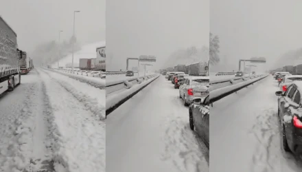 Κώστας Πετρωτός και Νίκος Κουλιανός, μαζί με τους τυχερούς ακροατές του διαγωνισμού βρίσκονται ''εγκλωβισμένοι'' εν μέσω έντονης χιονόπτωσης στις αυστριακές Άλπεις και όπως μπορείτε να δείτε η ουρά φτάνει τουλάχιστον τα τέσσερα χιλιόμετρα, κάνοντας το έργο της επιστροφής, δυσκολότερο.