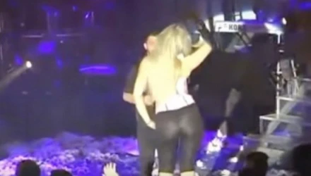 Το κορίτσι φοράει διάφανο κολάν και με το που πέφτουν τα φώτα πάνω της μας δείχνει την επιλογή του «δαντελένιου»εσωρούχου της