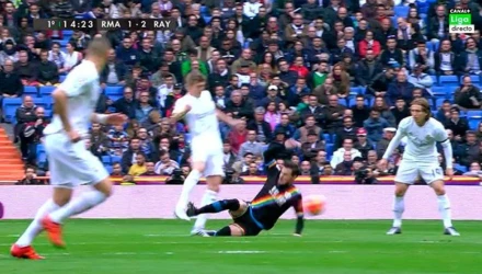 Η Ράγιο Βαγιεκάνο έμεινε με δέκα παίκτες στο 14' της αναμέτρησης με τη Ρεάλ Μαδρίτης μετά από δολοφονικό τάκλιν του Τίτο στον Κρόος.