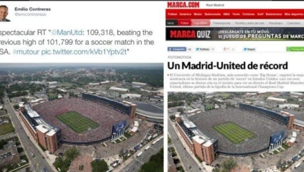 Χθες το βράδυ στο Ρεάλ Μαδρίτης- Μάντσεστερ Γιουνάιτεντ, το στάδιο του πανεπιστημίου του Μίτσιγκαν γέμισε με 109 χιλιάδες οπαδούς των δύο ομάδων, ως επι το πλείστον από φίλους των «κόκκινων διαβόλων».