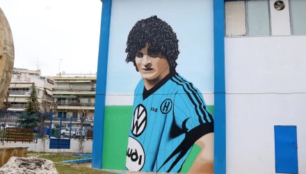 Μεγάλη και θετική απήχηση έχει στην Θεσσαλονίκη και έξω από αυτήν, το θεαματικό γιγαντιαίο γκράφιτι του Βασίλη Χατζηπαναγή στην είσοδο του "Κατσάνειου" στα γραφεία του ΓΣ Ηρακλής.