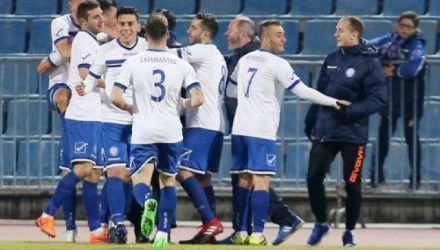 Ο Λεοζίνιο εκτελεί το σχεδόν συρτά του φάουλ και ο Περόνε με προβολή πίσω από την άμυνα της ΑΕΚ κάνει το 1-1. Αρκετά λάθος ήταν η εκτίμηση του κίπερ της Ένωσης Μπάρκα.