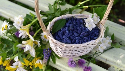 Είναι ο πιο πρώιμος καρποφόρος θάμνος ανάμεσα σε όλα τα μούρα. Καρποφορεί πιο νωρίς από τις φράουλες και τα σμέουρα. Η γεύση των μπλε μούρων είναι γλυκόξινη και θυμίζει τα μύρτιλα. Τα πρώτα μούρα εμφανίζονται στα μέσα Μαΐου. Συχνά παρομοιάζονται με μακρόστενα βατόμουρα. Στην αγορά διατίθενται και σε μορφή σκόνης που προστίθεται σε smoothies, shakes και δημητριακά.