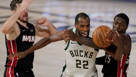 Η ομάδα του Μαϊάμι που περιμένει στους τελικούς της Ανατολής τον νικητή του ζευγαριού Σέλτικς-Ράπτορς (3-2), είχε κορυφαίο τον Τζίμι Μπάτλερ με 17 πόντους, 10 ριμπάουντ και έξι ασίστ ενώ 17 πόντους είχε ο Γκόραν Ντράγκιτς, 13 ο Μπαμ Αντεμπάγιο και 16 με 4/9 τρίποντα ο Τζάε Κράουντερ. Για τους Μπακς, ο Κρις Μίντλετον πήρε πολλές προσπάθειες απόντος του Αντετοκούνμπο (8/25 σουτ) και τελείωσε το παιχνίδι με 23 πόντους, επτά ριμπάουντ και έξι ασίστ. Ακόμη, ο ΝτιΒιτσένζο είχε 17, ο Μπρουκ Λόπεζ 15 με 14 ριμπάουντ και οι Μάθιους και Ουίλιαμς από 11.