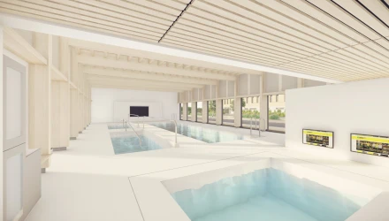 Για να γίνουμε πιο συγκεκριμένοι, θα περιλαμβάνει πισίνες, με πρόσθετες περιοχές υδροθεραπείας, συμπεριλαμβανομένων θερμών και κρύων λουτρών αποκατάστασης, υποβρύχιο διάδρομο και συστήματα κάμερας για την παρακολούθηση των κινήσεων. Ακόμη, όπως έγινε γνωστό, το νέο κτίριο διοίκησης και μέσων ενημέρωσης θα έχει, πλέον, μόνιμη στέγη, ενώ παράλληλα θα υπάρχει μια νέος χώρος υποδοχής για τους επισκέπτες.