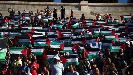 Το ΠΑΜΕ ύψωσε σημαίες της Παλαιστίνης στο Καλλιμάρμαρο (pics)
