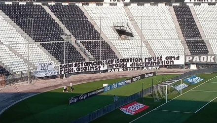 Το πανό των οπαδών του ΠΑΟΚ στη θύρα 4 για το διαχωρισμό σε εμβολιασμένους - ανεμβολίαστους