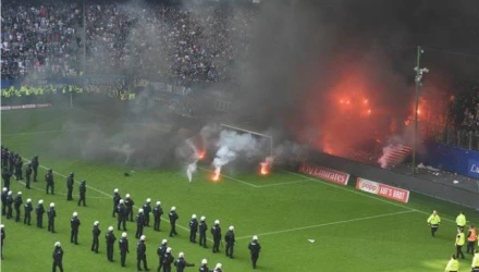 Την ίδια ώρα που από τον αγώνα Αμβούργο-Γκλάντμπαχ, παρότι υπήρχαν πρωτόγνωρα επεισόδια, πήραμε ένα καλό μάθημα για το τι σημαίνει οργανωμένη προσπάθεια καταστολής της βίας. Ιδιωτική ασφάλεια και δυνάμεις της αστυνομίας χωρίς πανικό και με υποδειγματική στοίχιση μέσα στο γήπεδο, διασφάλιζαν την ακεραιότητα των ποδοσφαιριστών και των διαιτητών, οι οποίοι περίμεναν καρτερικά να ηρεμήσουν τα πράγματα στην κερκίδα. Υπήρξε συμπαράσταση από έφιππους αστυνομικούς, και συναδέλφους τους με σκυλιά. Τελικώς ο αγώνας έληξε χωρίς ακραίες σκηνές, το Αμβούργο υποβιβάστηκε και φαντάζομαι οι ταραξίες θα υποστούν τις συνέπειες του νόμου.