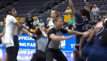 Ένα πολύ άσχημο περιστατικό έλαβε χώρα σε αγώνα μπάσκετ γυναικών, ανάμεσα σε Σάουθ Αλαμπάμα και Κόσταλ Καρολάινα, καθώς το παρκέ μετατράπηκε σε... ρινγκ και η διαιτητής έχασε τις αισθήσεις της.