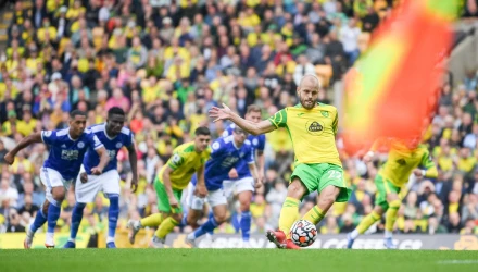 Μπορεί να βρέθηκε από νωρίς πίσω στο σκορ από τη Λέστερ, όμως η Νόριτς κατάφερε λίγο πριν το τέλος του πρώτου μέρους να ισοφαρίσει σε 1-1 χάρη στην εύστοχη εκτέλεση πέναλτι του Πούκι. Η παράβαση δόθηκε μετά από χρήση του VAR. Αυτό ήταν το πρώτο τέρμα των «καναρινιών» στην επιστροφή τους στην Πρέμιερ Λιγκ.