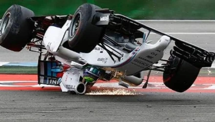 Για καλή του τύχη, ο Μάσα δεν έπαθε το παραμικρό, ωστόσο, άπαντες πάγωσαν, ειδικά όταν είδαν το μονοθέσιο να τουμπάρει και να σέρνεται και να πετάει σπίθες με τον πιλότο να βρίσκεται μέσα στο όχημα!