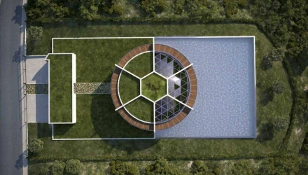 Αλλά το γεγονός ότι όταν το κοιτάς από ψηλά σχηματίζει το Νο 10, σαν τη φανέλα του! Γνωστό ως One-Zero Eco House, το σπίτι του 2016 χωρίζει το οικόπεδο στα δυο, με το ένα κομμάτι να καταλαμβάνεται από την τεράστια πισίνα και το άλλο να θυμίζει γήπεδο ποδοσφαίρου.