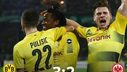 Σ΄ ένα παιχνίδι που έσπασε καρδιές και κρίθηκε στις καθυστερήσεις, η Μπορούσια Ντόρτμουντ επιβλήθηκε 3-2 της Άιντραχτ Φρανκφούρτης και πέρασε στην τρίτη θέση της βαθμολογίας, που δίνει το απευθείας εισιτήριο στους ομίλους του Champions League.