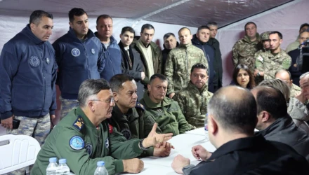 Το στρατιωτικό προσωπικό ήταν μέρος μιας μονάδας υπεύθυνης για τη συντήρηση και την επισκευή των τουρκικών αεροσκαφών F-16 που είχαν πετάξει στο Αζερμπαϊτζάν για να συμμετάσχουν στους εορτασμούς της Ημέρας της Νίκης της χώρας. Μια φωτογραφία που δημοσιεύτηκε από την υπηρεσία Τύπου του Υπουργείου Εσωτερικών της Γεωργίας δείχνει Γεωργιανούς διασώστες να εργάζονται στο σημείο της συντριβής ενός τουρκικού στρατιωτικού αεροπλάνου κοντά στο Σιγκνάγκι της Γεωργίας, στις 11 Νοεμβρίου 2025.