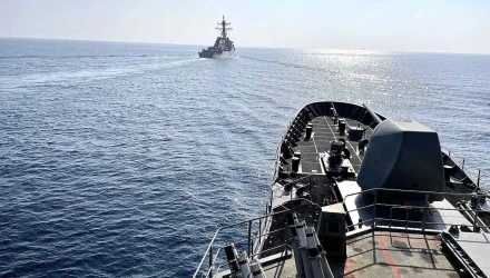 Πλοίο του ελληνικού πολεμικού ναυτικού παρακολουθεί από την πρώτη στιγμή όλες τις κινήσεις.